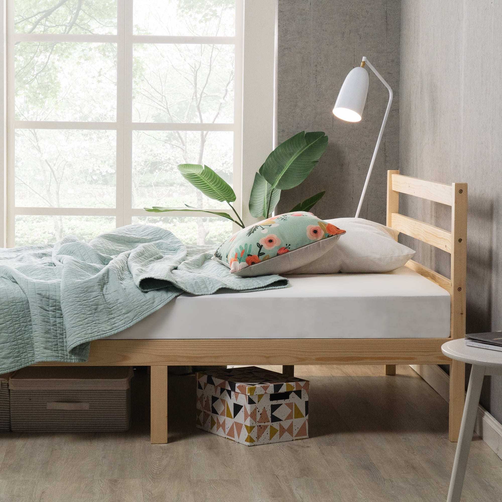 Zinus Robin 35″ Wood Platform Bed Frame with Headboard, King: SIMPLE & STYLISH – This beautiful pine bed frame features a classic and simple contemporary design, universal enough to fit into any bedroom aesthetic and into any budget STURDY CRAFTSMANSHIP – A solid wooden framework, from headboard to legs, is durably designed and made for long-lasting, squeak-free use NO BOX SPRING NEEDED – Reliable and closely spaced wood slats are designed to support and extend the life of your latex, memory foam, or spring mattress without the need for a box spring DURABLY ENGINEERED – A thick and sturdy solid wood frame is constructed with a steel interior framework for longevity; Twin size supports a maximum weight capacity of 350 lbs, while all other sizes can support up to 700 lbs EASY ASSEMBLY – All parts, tools, and instructions are shipped in one efficiently packed box for a simple set-up that takes less than an hour with a friend’s help Age Group: Adult, Universal. A Mattress sold separately