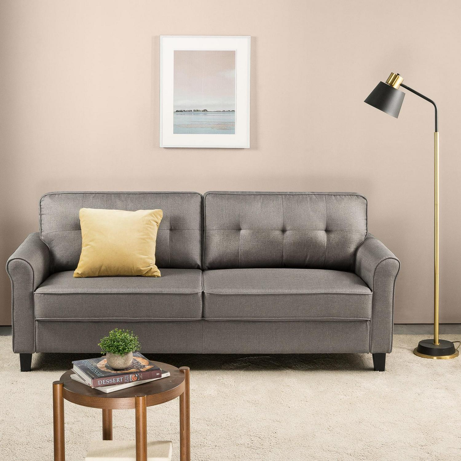 – COMPLEMENTARY COMFORT FOR ANY HOME – Enjoy cushioned comfort that looks like it was made for your space with this warm grey tufted sofa, made with dense foam padding and a classic silhouette