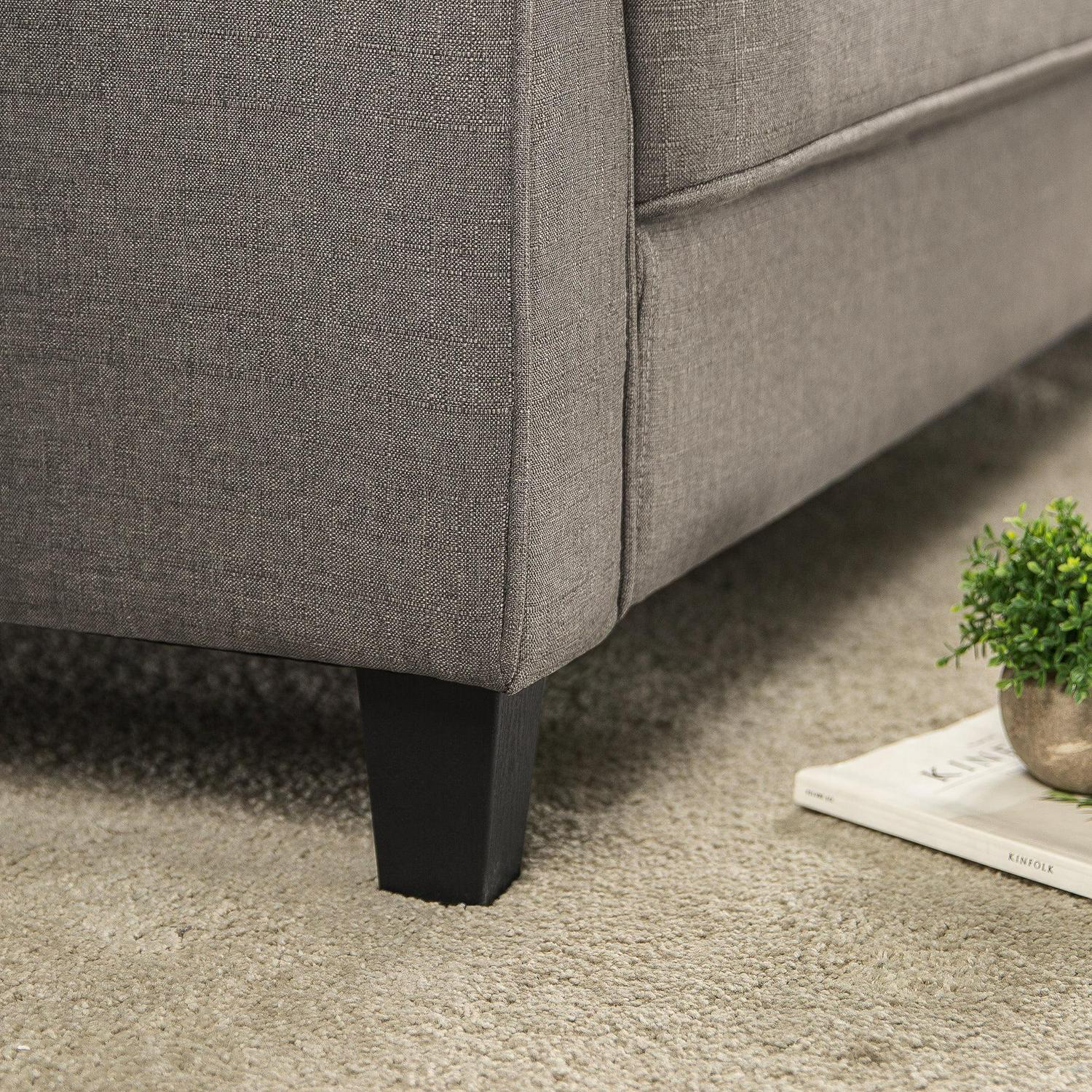Our cushy Sayan Sofa and comfy lounging go hand in hand. With a durable fabric exterior and a dense foam cushion interior, this loveable couch looks as good as it feels. Rounded arms, a crowd-pleasing shade of grey and just enough tufting give it an attractive style that fits right in with your existing furniture and throw pillows. You’ll find it extraordinarily simple to take comfort in this three-seater supportive embrace, and also in the fact that it’s fool proof to unpack and put together. The whole thing ships right to your door in one box with tool-free assembly instructions. A few simple clicks, one delivery box and a short assembly time later, this comfy number is all yours!. Age group: adult.