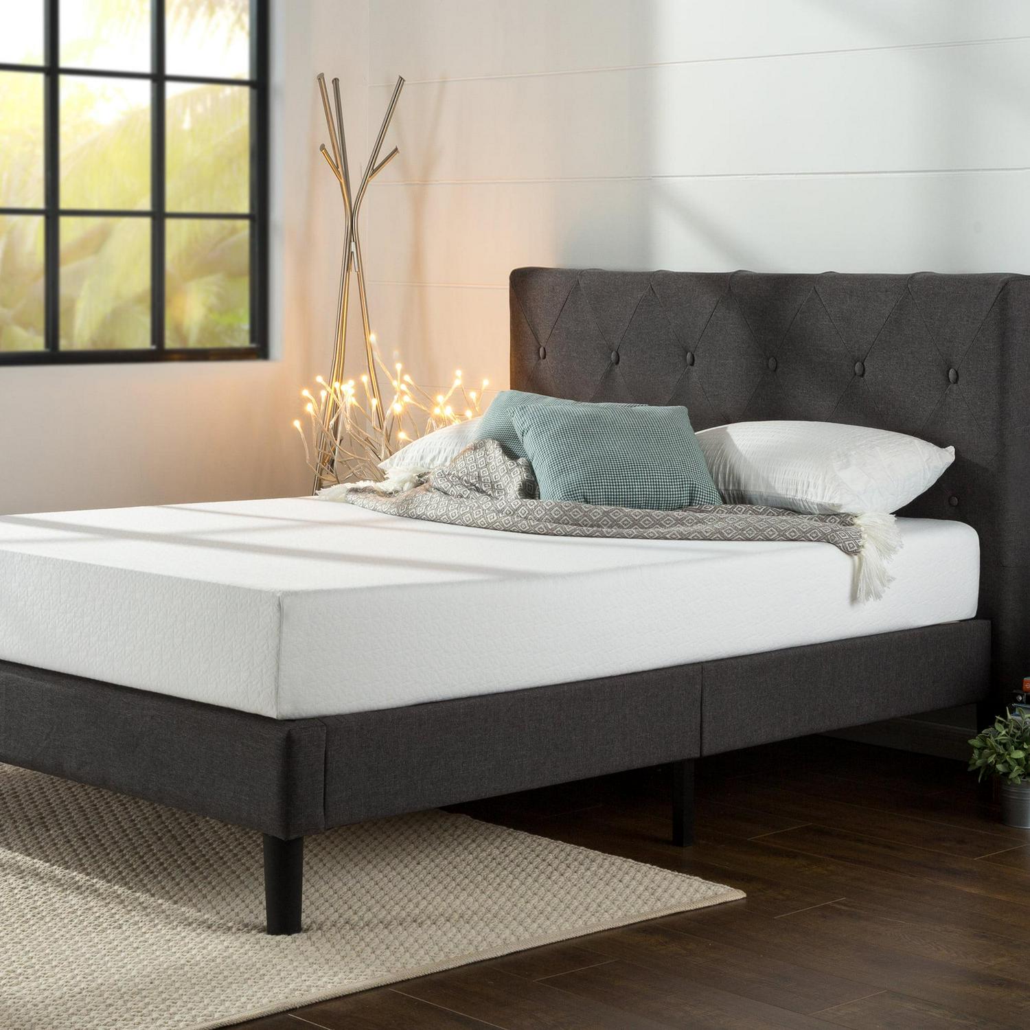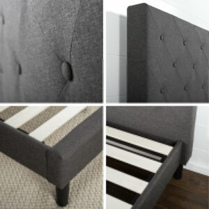 – Zinus Shalini 41″ Upholstered Platform Bed Frame, Dark Grey, Full: