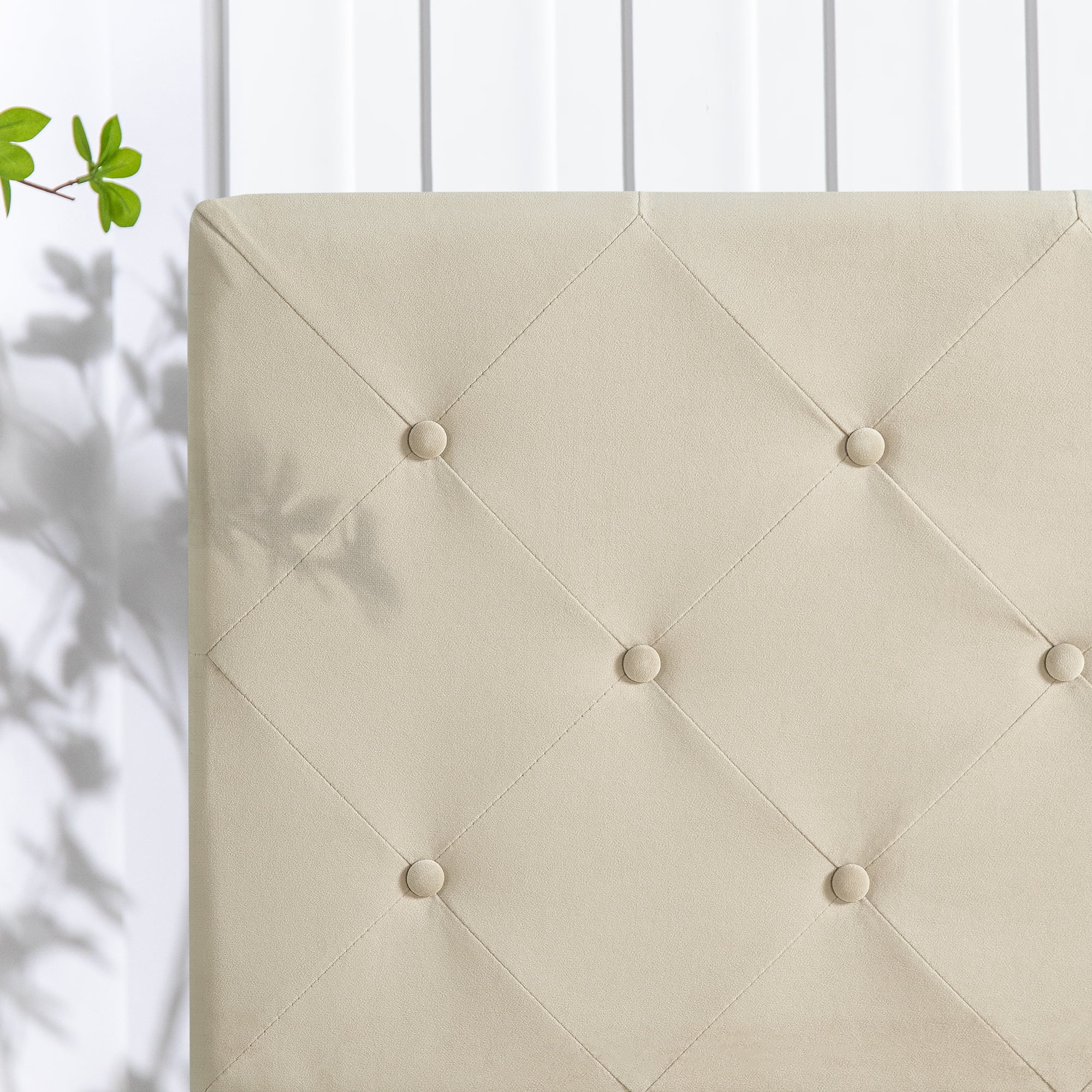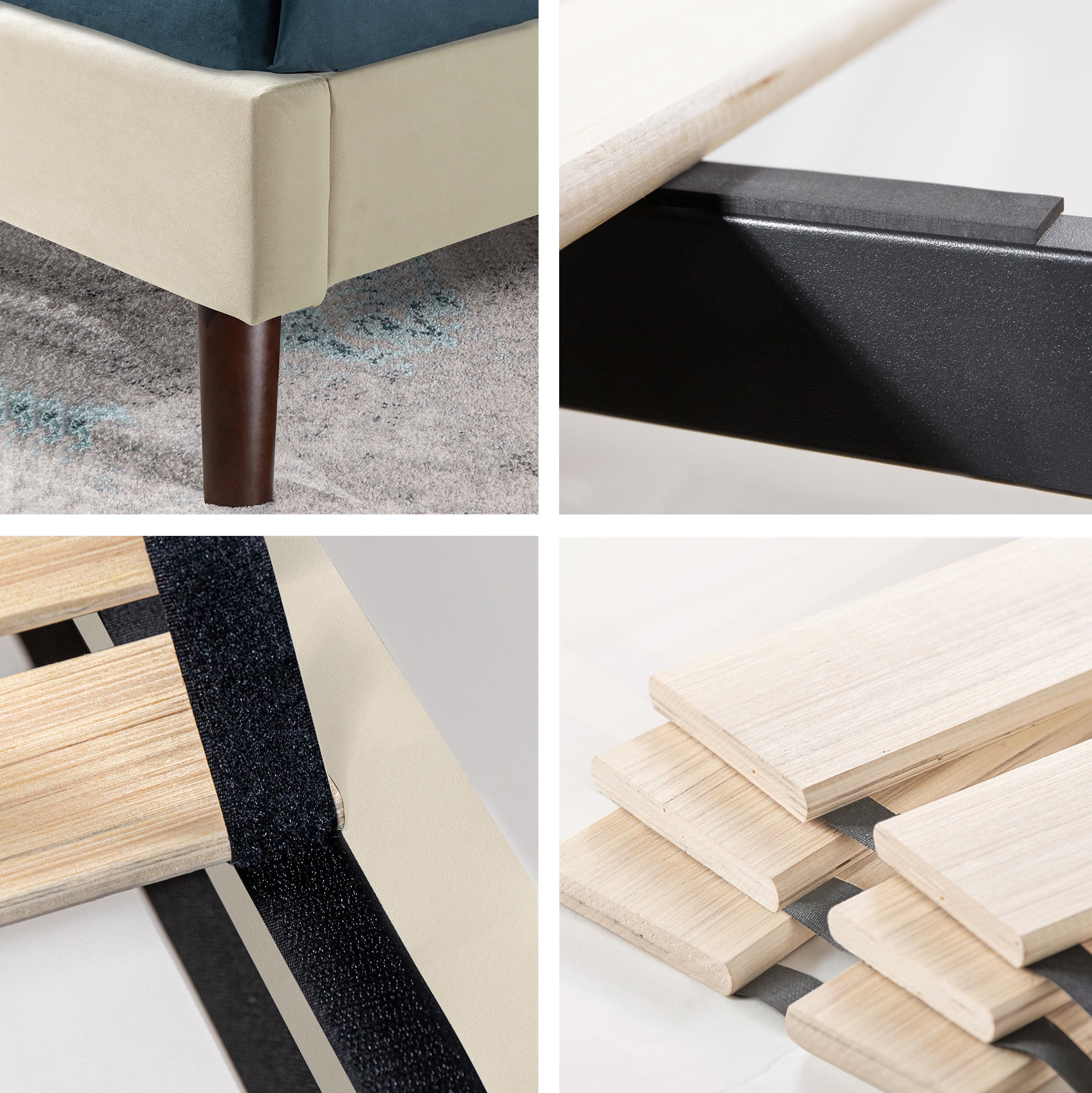 Zinus Shalini 41″ Upholstered Platform Bed Frame, Beige, Full GOOD LOOKS, CONFIDENT STYLE – With its easy-as-pie assembly, sturdy construction and elegant diamond pattern stitching, the Shalini stands the test of time and makes a stunningly chic addition to your bedroom DURABLY DESIGNED – Interior steel framework and dense foam padding add comfort and longevity; twin size supports a maximum weight capacity of 350 lbs, while all other sizes can support up to 700 lbs NO BOX SPRING NEEDED – Durable wood slats support and extend the life of your latex, memory foam or spring mattress without the need for a box spring; for the twin and full sizes, slats are spaced 2.7 inches apart, and for other sizes, slats are spaced 3.2 inches apart EASY ASSEMBLY – Everything you need is efficiently packed into one box and shipped straight to your door; all parts, tools and instructions are conveniently located in the zippered compartment of the headboard for easy, two-person assembly in under an hour Mattress sold separately See our assortment of Zinus products