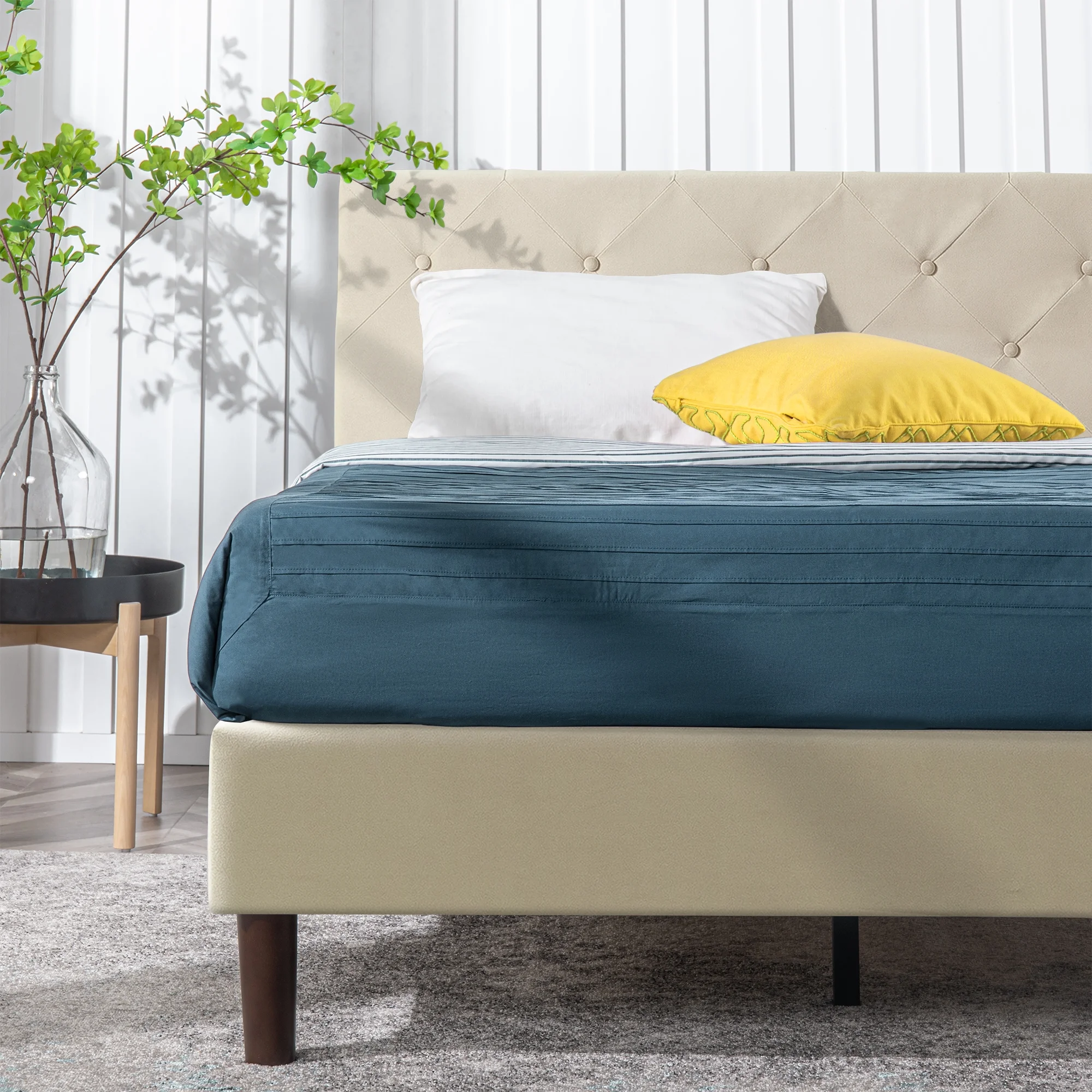 Zinus Shalini 41″ Upholstered Platform Bed, Beige, Full