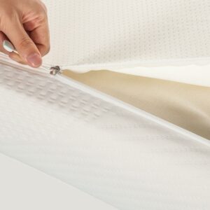 - Fits under standard fitted or deep pocket sheets if your mattress is 14″ or higher