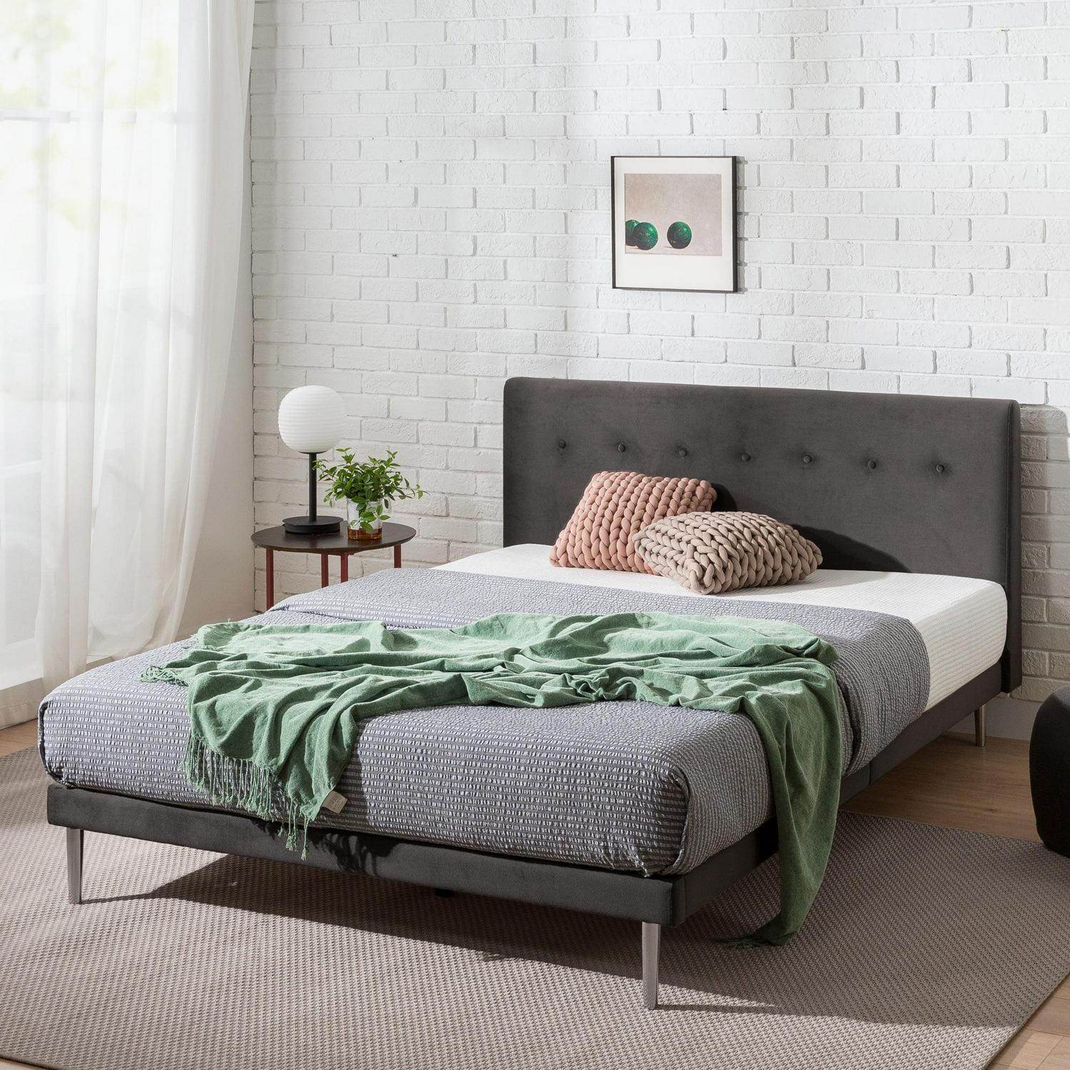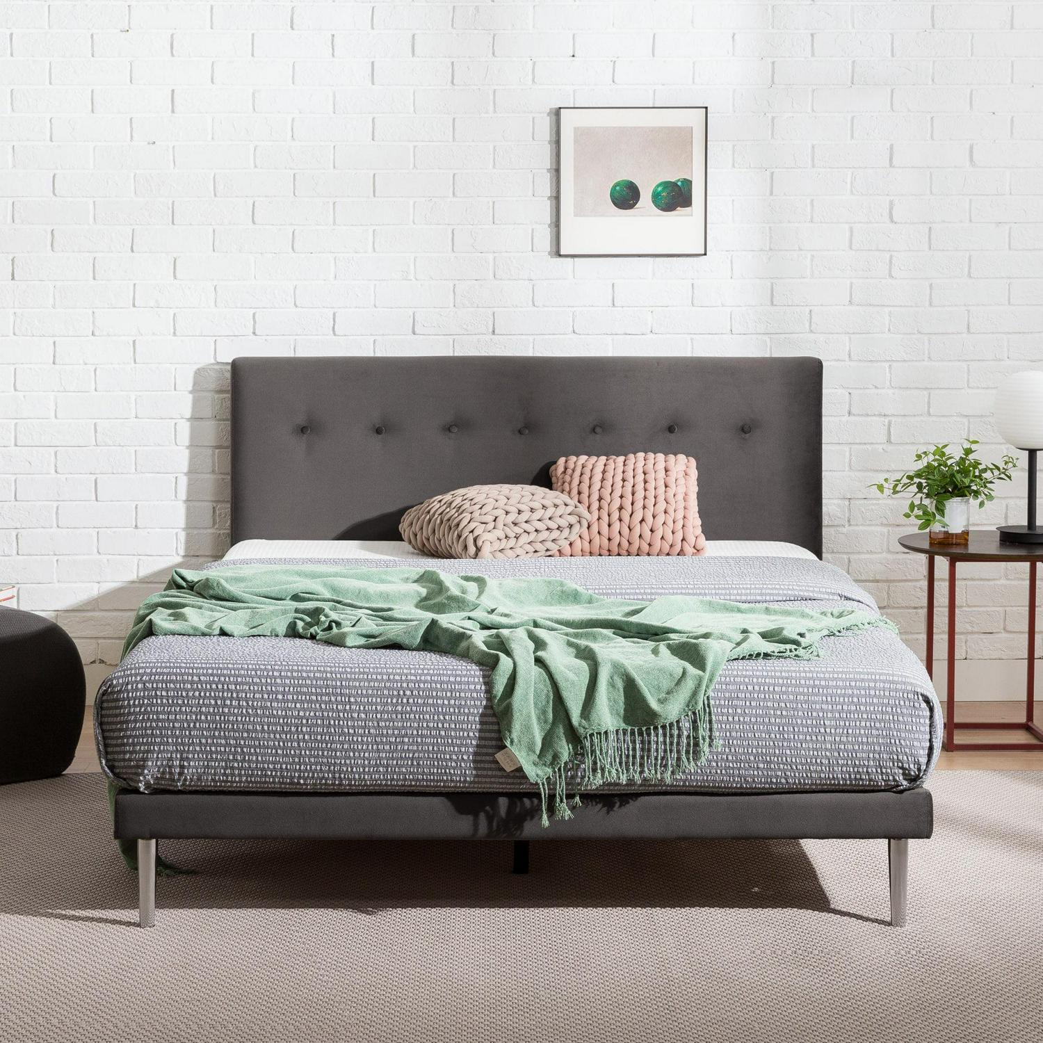 Zinus Taylor 38 Velvet Upholstered Platform Bed Frame, Charcoal, Queen