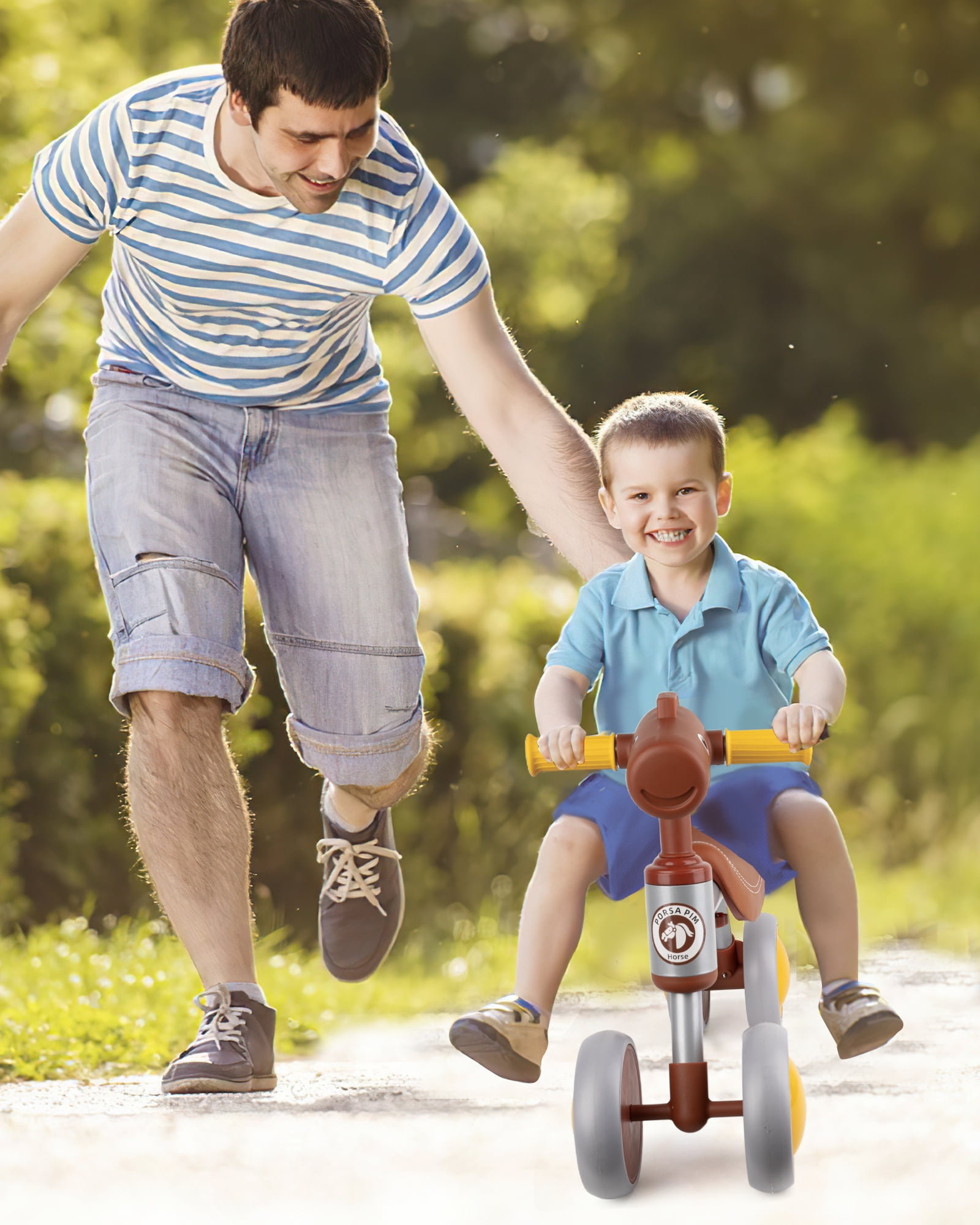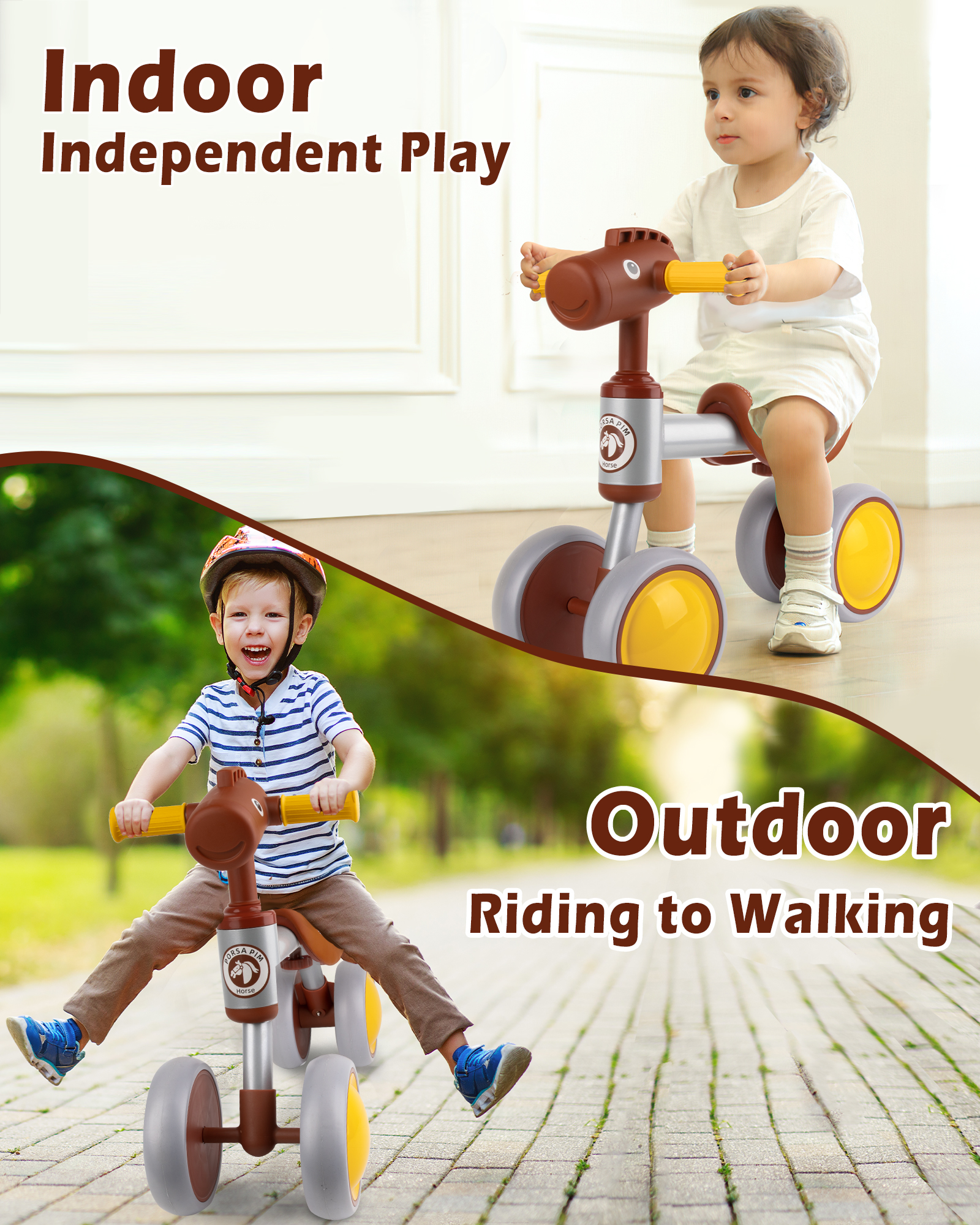 Great Gift for Your Baby A baby balance bike is a small ride-on without any pedals, kids need to use their own feet to reach the ground and move their feet to push the bike and can use the handlebars to change direction. It not only exercises kids legs strength but also teaches them how to ride a bike. Most kids could have no fear and ride this bike easily because they can place their feet solidly on the ground. If your baby can walk or start to walk, this bike would be a great gift for him/her to start walking and riding, since this bike could help them enhance their balance, coordination, and steer abilities at an early age.The infant balance bike is very simple and can be installed easily without any tools. Compared with most small bicycles, it has a more stable fit. It is larger and has more room for baby’s growth. Overall, they are easier to ride and much more comfortable! baby balance bike for 1 year old 12-36 Month boys and girls, as the best first birthday gift for your baby unisex. Features: 1. Courage at an early age: Baby bike helps your kids develop balance and confidence at an early age. It can help them to learn riding and steering, as well as coordination. These motor skills are necessary for your little ones’ growth and development 2. Less Risk of Injury: Safety is our first priority. 100% Safety —Tested by U.S. local Lab to be in compliance with US law according to the standard. Adopt high standard HDPD material, improve scratch resistance,BPA free, nontoxic, durable and Sturdy. 3. Soft Seat: A good seat can give the child a different experience, toddler balance car seat with a saddle design, more in line with the ergonomics of the baby ride more comfortable, so you can guide the baby riding peace of mind. 4.100% Safety: Unlike learning to ride a bike with training wheels, kids learn to balance first. This greatly reduces the risk of injury as they can safely plant their feet anytime they feel unbalanced. Specifications: Color: Brown Wheel Size: 12 Inches Frame Material: Carbon Steel Suspension Type: Dual Brake Style: U Brake Item Weight: 4.6 Pounds Maximum Weight Recommendation: 66 Pounds Special Feature: Training Wheel, no pedal, Lightweight Included Components: Training Wheel, Tool Kit