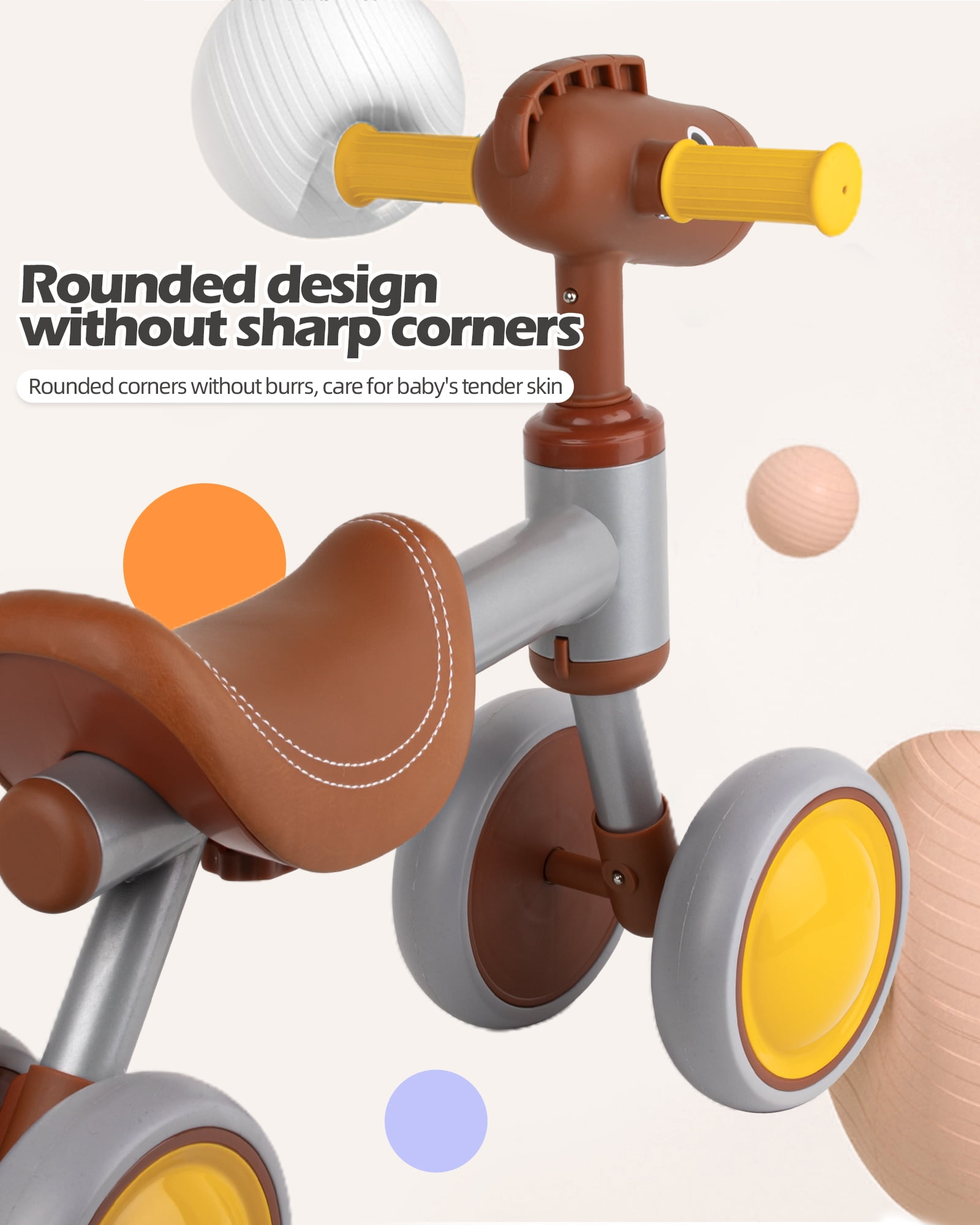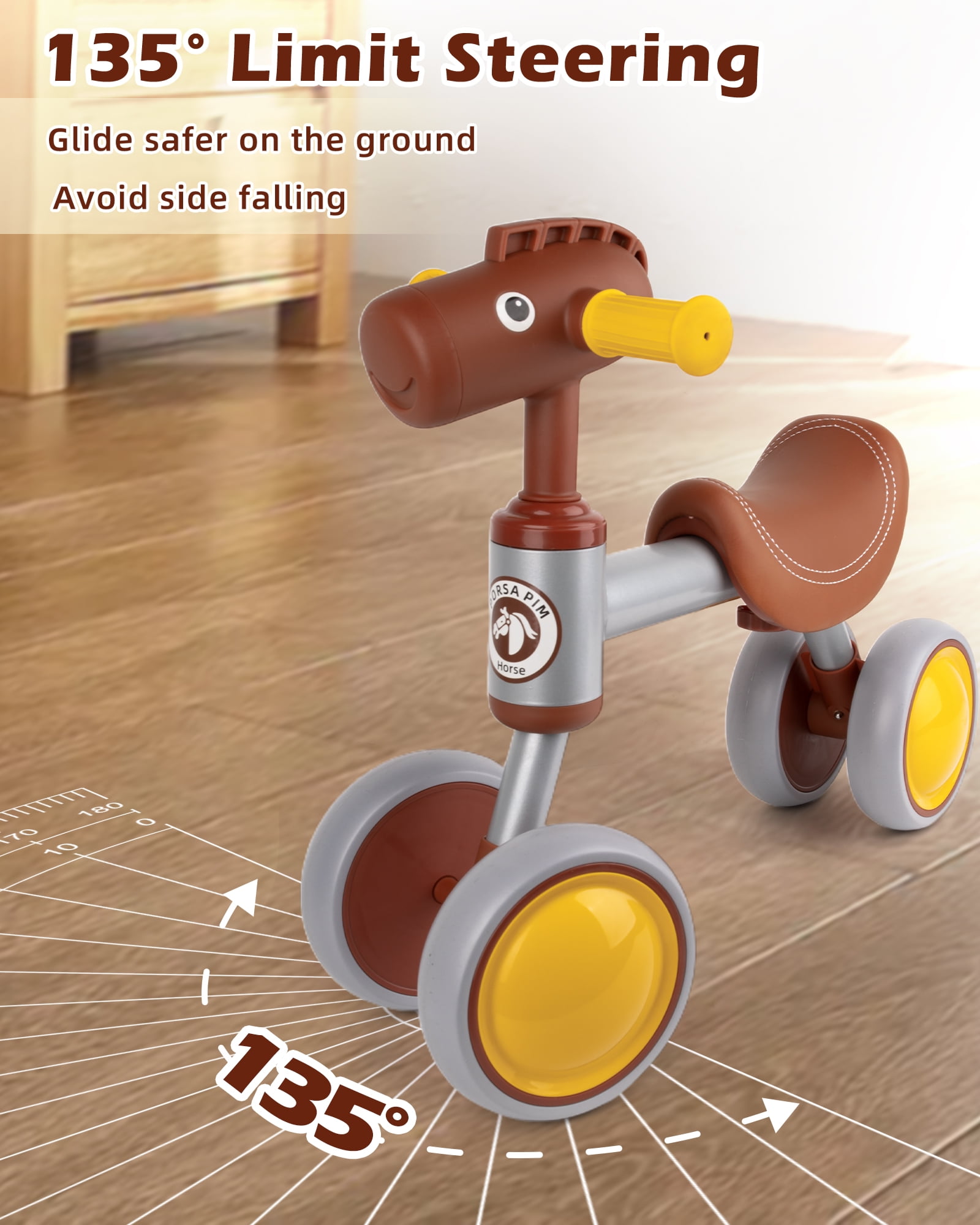 Zmoon Baby Balance Bike for 1 Year Old Boys Girls Toddler Balance Bike 4 Wheels Walker Riding Toys for 12 to 24 Months Toddler First Bike Birthday Gifts, Brown Christmas Gift