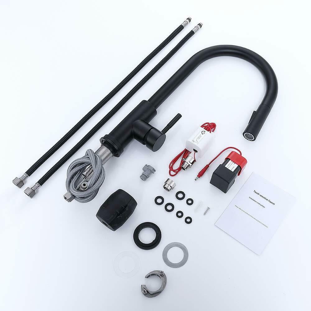 Zovajonia Automatic Touch Sensor Swivel Kitchen Faucet with Pull down Sprayer Matte Black
