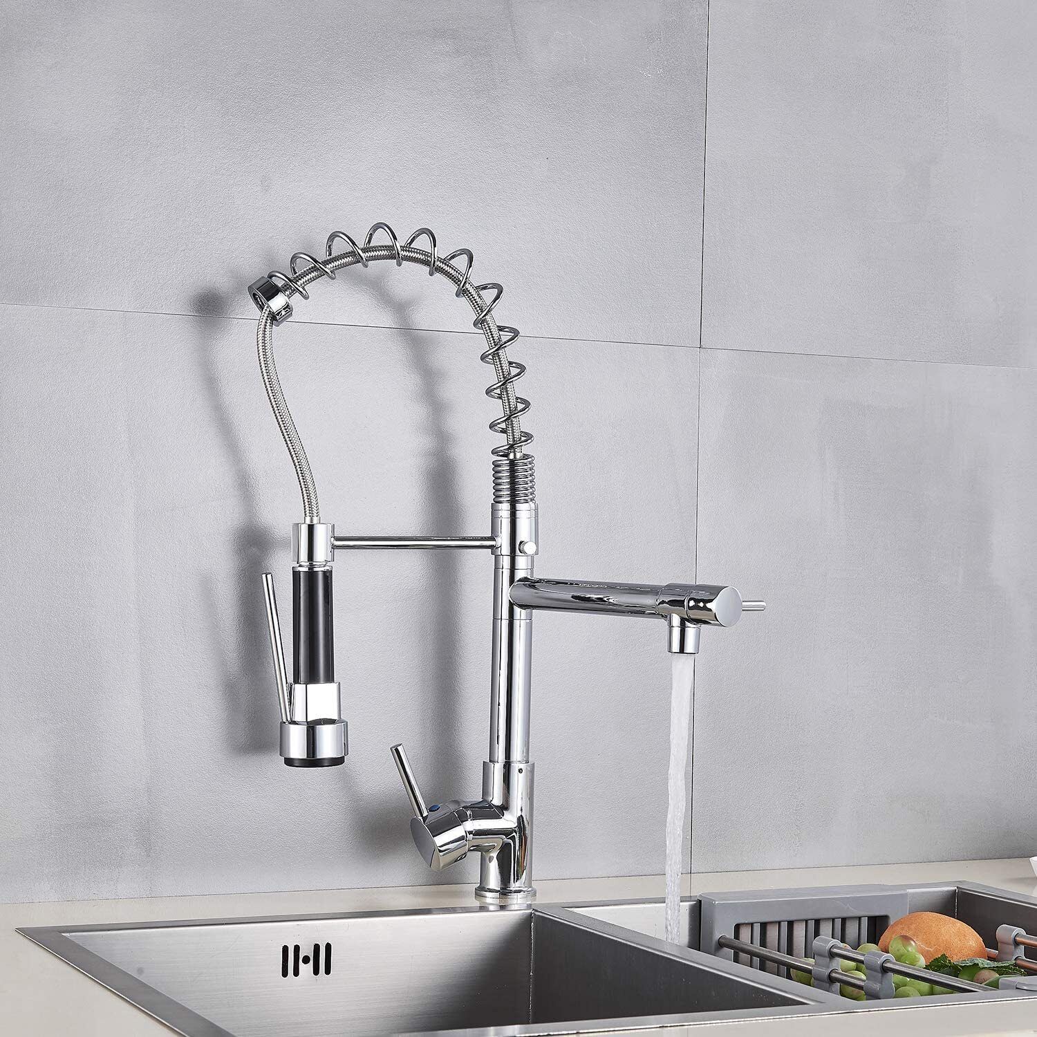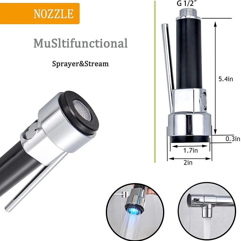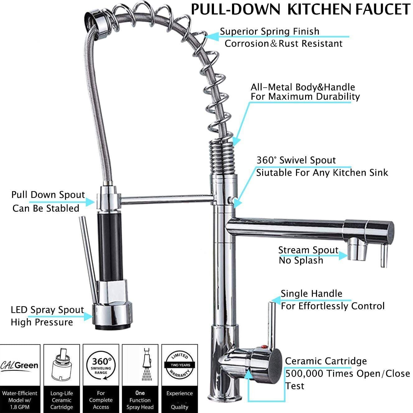 Zovajonia Commercial Kitchen Faucet with Pull Down Sprayer Single Handle Kitchen Sink Faucet with 2 Spout LED Light Polished Chrome