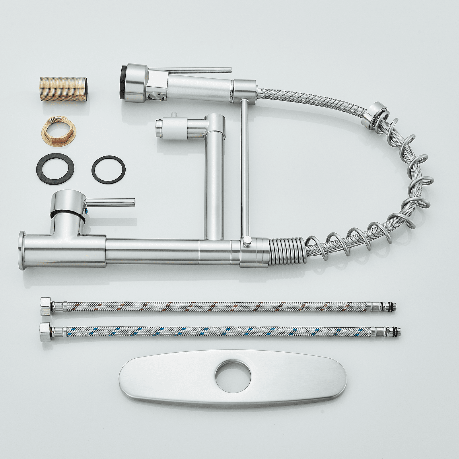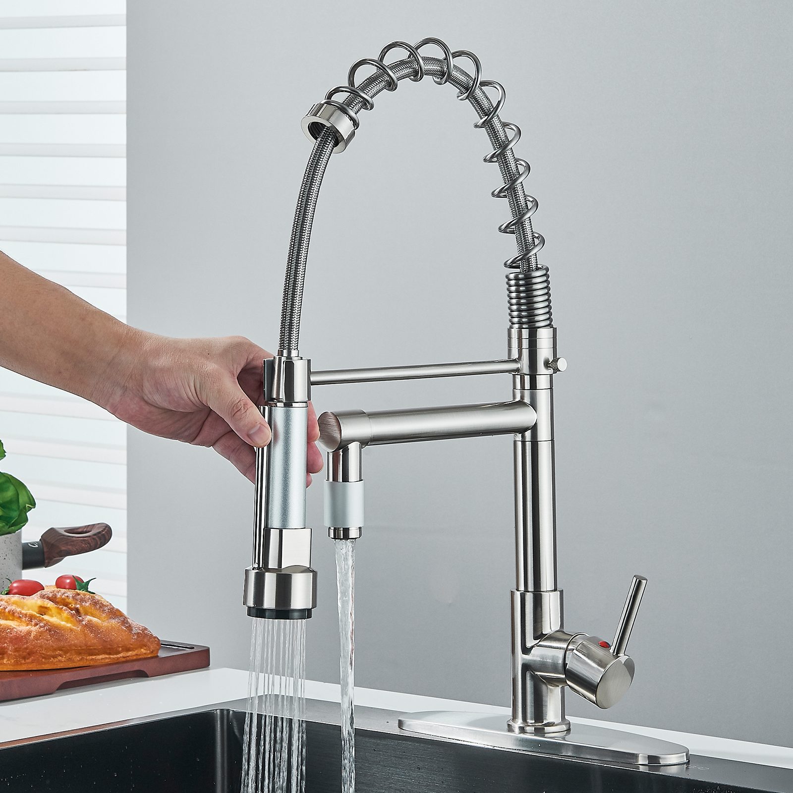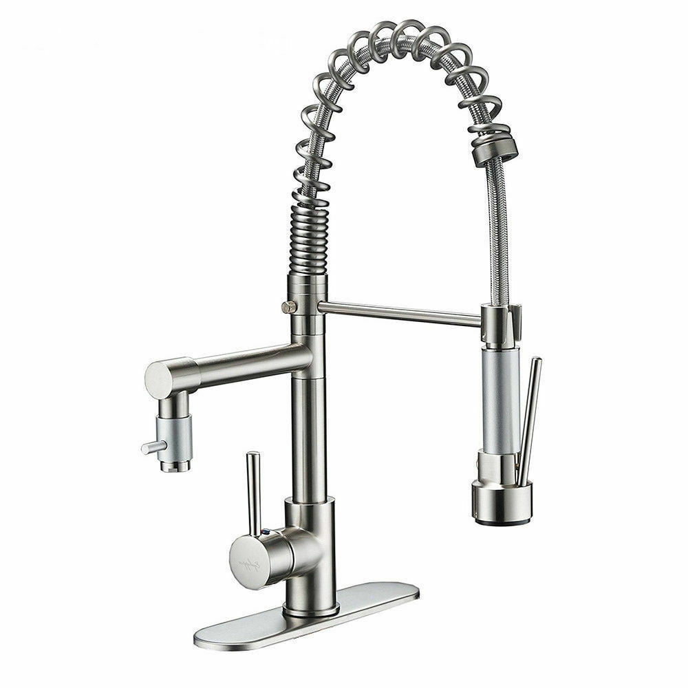 Zovajonia Pull-Down Sprayer Kitchen Faucet Sink Swivel Spout Single-Handle Mixer Tap Brushed Nickel