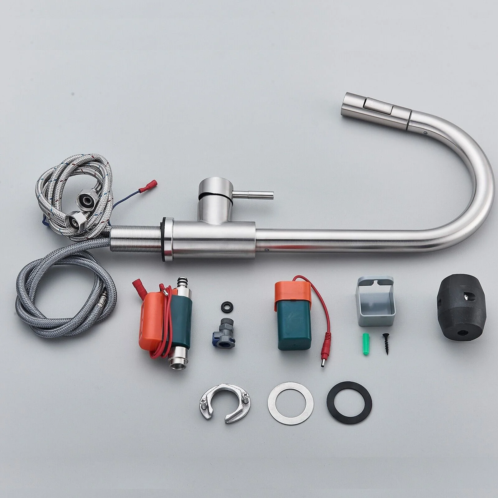Details Function: Touch Sensor Faucet Feature:Swivel Spout Finish: Brushed Nickel Number of Handles: Single Handle Installation Holes: One Hole Faucet Total Height: 380 mm Spout Height: 195 mm Spout Length:170 mm Valve Type: Ceramic Valve Faucet Body Material: Brass Faucet Spout Material: Plastic Faucet Handle Material:Brass With 2 pipes for cold and hot water. The installation hole is 3.5-4.2cm (1.38″-1.65″) Returns Policy And Feedback 1, Returns Policy If you are dissatisfied for any reason,please do not be quick to leave negative/neutral feedback.Please contact us immediately,We will help you solve the problem.Our aim is to take all the interests of our customers first!If you are satisfied with the product you received,please leave us a good review.We would appreciate it if you could leave us positive feedback as well. We will do the same for you. 2, Feedback Please contact us if you have any problems and suggestions. Usually, you will get reply in 24 hours. In case any broken problem happens, contact us without hesitation, we will solve the problem until satisfaction. 5 years after sale service for all our faucet. With two modes, you can easily switch from,stream mode to spray mode. Includes all,functions from dropping a tall pitcher to,washing vegetables and sinks.|The 45 cm,sprayer offers unlimited operability and,easy cleaning of the kitchen.|A simple touch on the kitchen sink faucet’s spout or body,starts and stops the flow of water for a near touchless,cleaning design.