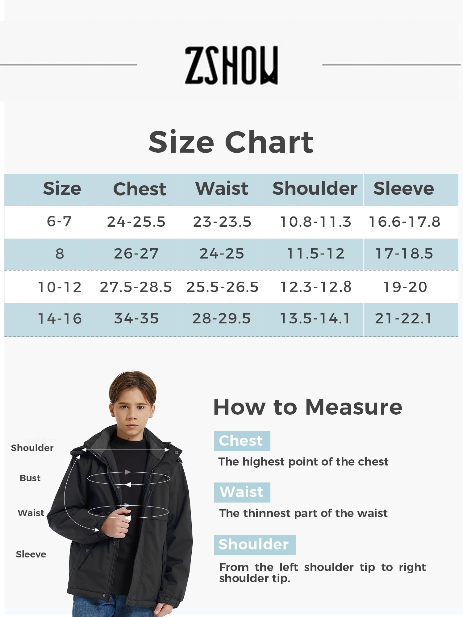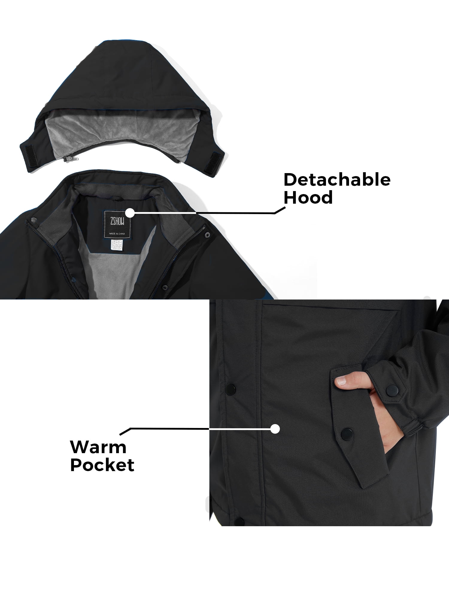 ZSHOW Boy’s Snow Jacket Waterproof Ski Coat Insulated Winter Coats with Hood Black 14/16