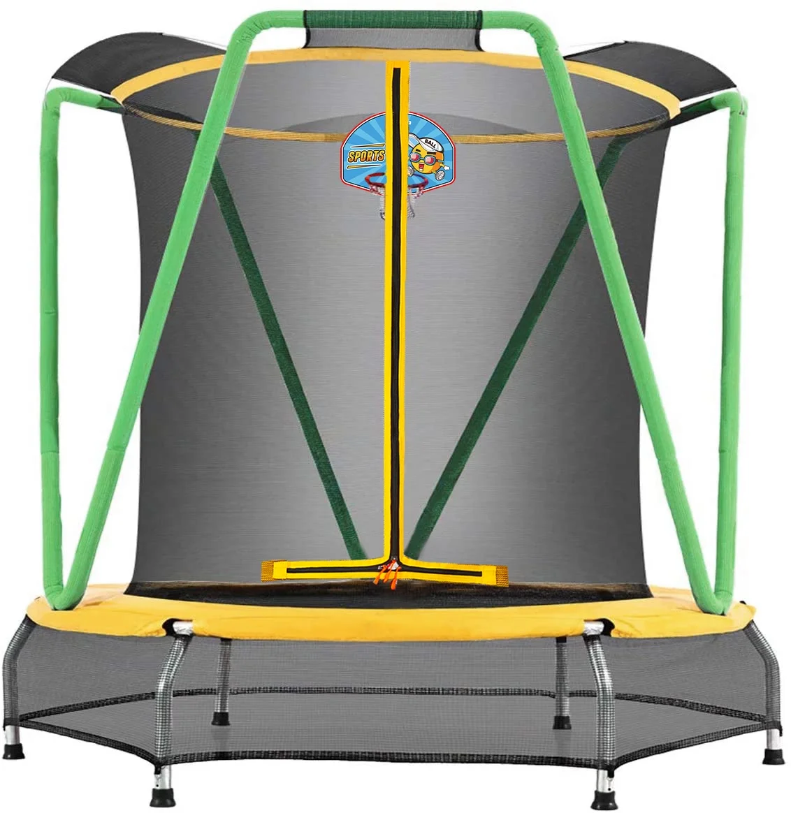 Zupapa Kids Trampoline with Enclosure Net Basketball Hoop, Toddlers Mini Small Trampolines for Indoor Outdoor for Children Baby Age 2-8