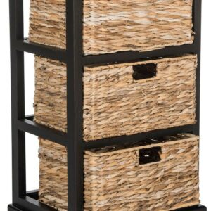 SAFAVIEH Halle Solid 3 Wicker Basket Storage Side Table, Distressed Black