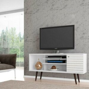 Liberty 53.14″ Mid-Century Modern TV Stand with 5 Shelves and 1 Door with Solid Wood Legs