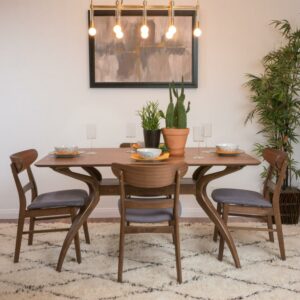 Bellamy Studios Lydia Mid-Century Modern 5 Piece Dining Set, Dark Gray and Natural Walnut