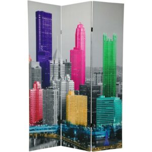 Handmade Wood and Canvas Double-sided New York Scene Room Divider (China)