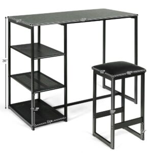 Gymax 3 Piece Pub Set Industrial Style Faux Marble Top Table and 2 Stools Dining Set