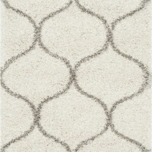SAFAVIEH Hudson Arline Geometric Shag Area Rug, Ivory/Grey, 3′ x 5′