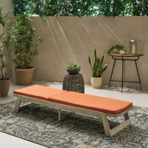 Noble House Maki Outdoor Acacia Wood Chaise Lounge in Light Gray and Orange