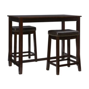 Linon Claridge 3-Piece Counter Height Tavern Set, Brown with Brown Faux Leather