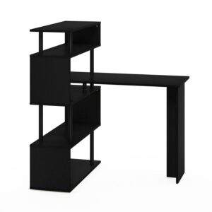 Furinno Moore L-Shape Computer Desk with 5-Tier Shelves, Americano/Black