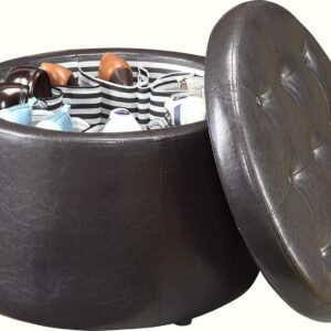 Convenience Concepts Designs4Comfort Round Shoe Storage Ottoman, Espresso Faux Leather