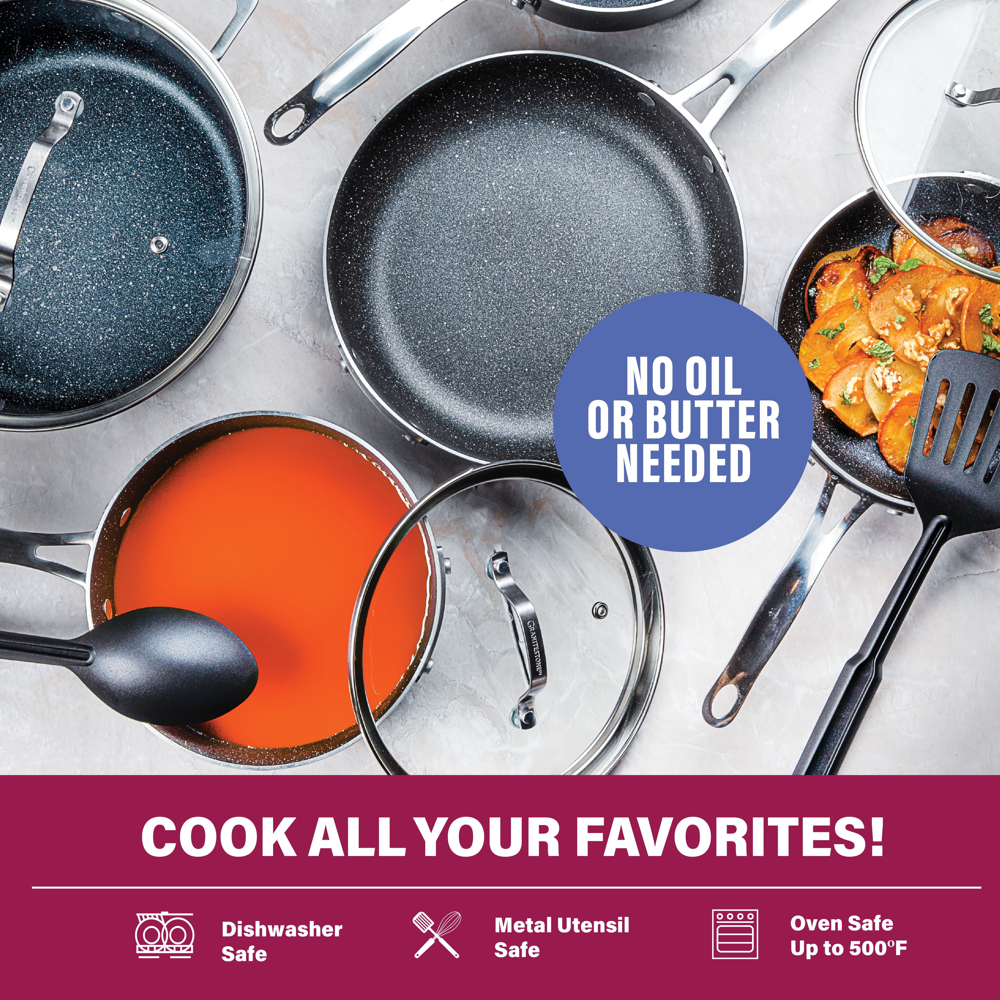 Granitestone 10″ Stackmaster 5 Piece Nonstick Pots and Pans Set, Stackable Aluminum Cookware Set, Non Stick