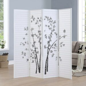 Roundhill Furniture Bamboo Print 4 Panel Room Divider, 71″ Tall, White