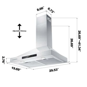 CIARRA Wall Mount Range Hood 30 inch in Stainless Steel CAS30875