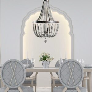 Kenroy Home Dumas 3-Light Chandelier with Suspended Wooden Beads or Dining Room, Living Room, Bedroom, High Ceiling, Foyer or Entryway, Gray