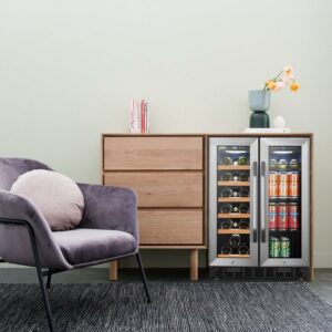 Lanbo 24 inch 18 Bottle 55 Cans Under Counter Dual Zone Wine Cooler Beverage Refrigerator