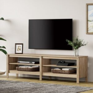 Oak TV Stand for 75 Inch TV, Farmhouse Wood TV Cabinet with 4 Cubby for Living Room Bedroom,70 inch