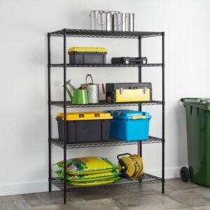 Hyper Tough Black Wire Shelf 5-Tier Heavy Duty 72″H x 48″W x 24″D, 4000lb Total Capacity