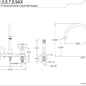 Kingston KB721AX Vintage Two-Handle 4-Hole 8″ Centerset Kitchen Faucet with Side Sprayer in Polished Chrome