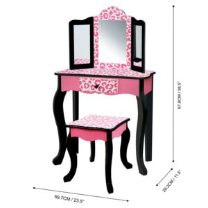 Fantasy Fields Gisele Kids Vanity Table Set with Mirror and Stool, Leopard Print