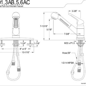 Kingston Brass KB701 Single-Handle 1-or-3 Hole Deck Mount Pull-Out Sprayer Kitchen Faucet in Polished Chrome