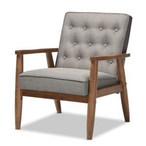 Samu Mid-Century Retro Modern Grey Fabric Upholstered Wooden Lounge Chair by Bellamy Studios