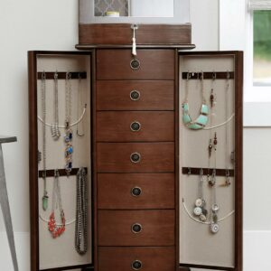 Hives & Honey Jenny Walnut Modern Locking Jewelry Armoire for Women – Freestanding Wood Cabinet