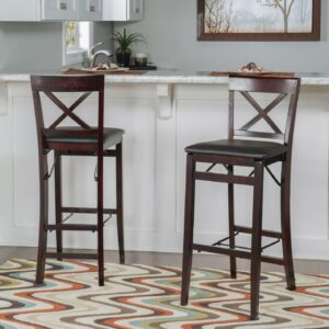 Linon Triena Full Back Folding Dining Chairs, 30″ Seat Height, Espresso Finish with Brown Fabric