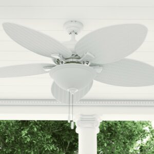 Honeywell Palm Valley 52″ White Tropical Ceiling Fan with 5 Palm Blades, Pull Chain & Reverse Airflow