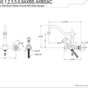 Kingston Brass KS1241AXBS Heritage Wall Mount Bridge Kitchen Faucet with Brass Spray, Polished Chrome