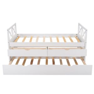 Euroco Modern Solid Wood Race Car Shaped Platform Bed, Twin Bed with Wheels and Shelf Design, Red