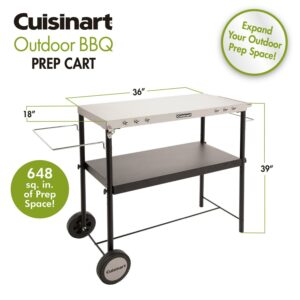 Cuisinart Outdoor BBQ Prep Cart, Stainless Steel Portable Grill Table with Wheels, Grill Cart with Adjustable Storage Shelf, Tool Hooks, Trash Bag & Paper Towel Holder