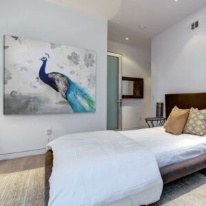 Marmont Hill “Peacock Fable Cool” by Christine Lindstrom Painting Print on Wrapped Canvas
