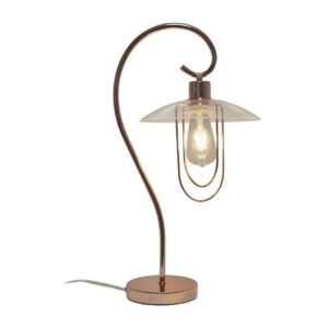 Lalia Home Modern Metal Scroll Table Lamp with Curved Metal Base and Clear Glass Shade – Rose Gold