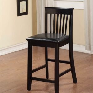 Linon Torino Full Back Wood Counter Stool, 24″ Seat Height, Black Finish with Black Fabric