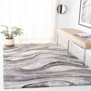 SAFAVIEH Cyrus Ifrit Abstract Shag Area Rug, Gray/Beige, 5’5″ x 7’6″