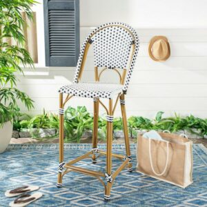 SAFAVIEH Zaid Outdoor Patio Stackable, Counterstool, Black/White/Brown, Set of 2