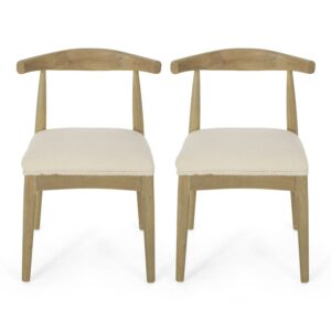 Noble House Cotterell Fabric and Wood Dining Chairs, Set of 2, Ivory Boucle and Light Ash