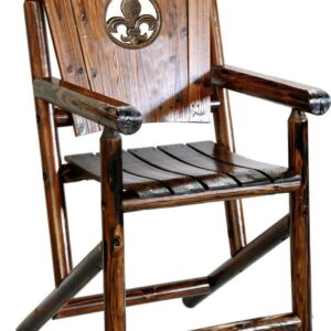 Leigh Country Char-Log Adult Outdoor Wood Bar Height Armchair with Fleur De Lis Medallion – Brown